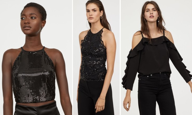 Si prefieres pantalones, con una camisa, un jersey, suéter, … luego simplemente lo sustituyes por un top negro, gris o el color que más te favorezca, eso sí, festivo y no olvides cambiarte los zapatos, elige un bolso mini, voila, ya estás preparada.